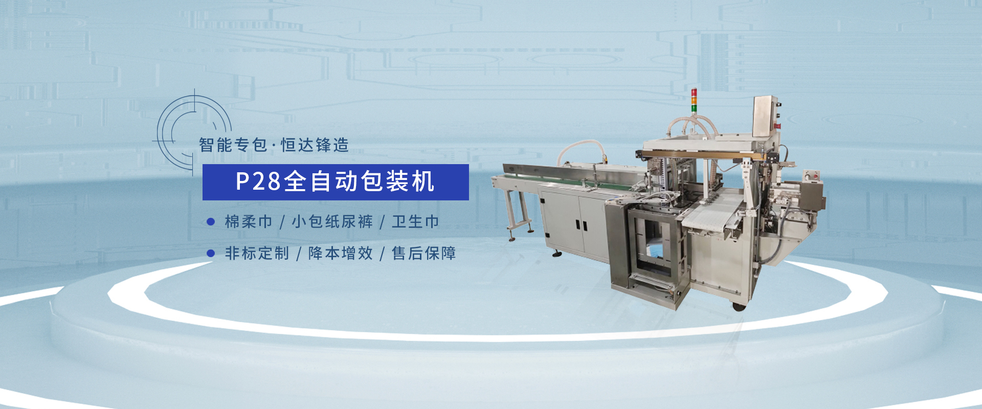 P28包裝機是主要用于衛生巾、嬰兒紙尿褲(小包)、嬰兒護理墊、棉柔巾等裝袋封口的全自動包裝機。